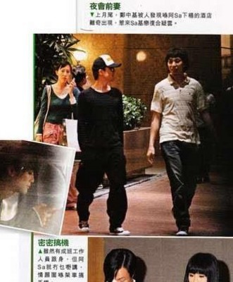 據(jù)香港媒體報道,從秘密結(jié)婚,到閃電召開離婚真人秀,糾纏6年的Sa基戀戲劇性地宣告落幕!然而近日身處浙江橫店趕拍新片《財神客!返陌a,傳被人發(fā)現(xiàn)密會鄭中基,爆出疑似“婚外情”。