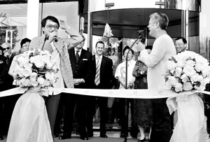 昨天下午,在金寶街,知名笑星趙本山和國際影星成龍應(yīng)邀參加了某購物中心開業(yè)典禮。由于在場有外國嘉賓,趙本山在致辭時,出人意料地以一口英語作開場白,成龍“挺身而出”,充當起翻譯。