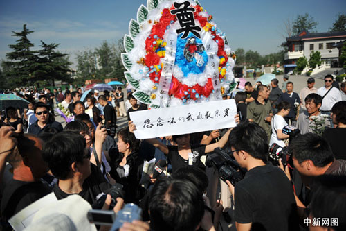 上午9時許,羅京遺體告別儀式開始,先是親屬送別,然后是羅京生前所在的中央電視臺的同事們,最后是社會各界群體。自發(fā)前來悼念的群眾眼含熱淚,排著長達四五百米的隊伍,而在等待進入告別廳期間,一位中年婦女中暑暈倒,被攙扶出去休息。