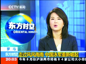 有意思的是,在進(jìn)行游泳世錦賽的報(bào)道時(shí),當(dāng)張泉靈談到張琳時(shí),屏幕左上角就立刻出現(xiàn)一個(gè)畫筆,動(dòng)態(tài)地描摹出張琳的彩色鉛筆畫,增添了喜感,讓人感覺尤為輕松。另外,主播語(yǔ)言“家;币彩且粋(gè)很明顯特點(diǎn)。