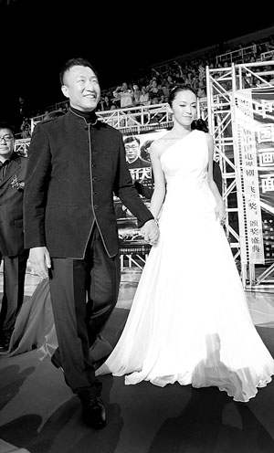 《潛伏》則重陣壓軸。孫紅雷、姚晨?jī)晌恢餮萋赎?duì)出場(chǎng),全場(chǎng)觀眾紛紛起立,掌聲持續(xù)不斷。除去導(dǎo)演姜偉等重磅人物,“晚秋”、“吳站長(zhǎng)”、“李涯”等《潛伏》中深入人心的配角演員也“潛”在走秀隊(duì)伍中。