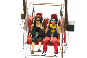 沖上云霄、過(guò)山車(chē)、大擺錘……小沈陽(yáng)一共玩了八個(gè)項(xiàng)目,全是主題公園里最考驗(yàn)人膽量的游樂(lè)項(xiàng)目。但小沈陽(yáng)完全不放在眼里,他挑選了過(guò)山車(chē)的第一排坐;而坐在海盜船上的時(shí)候,他卻又挑了最后一排,甚至在海盜船擺蕩至最高處的時(shí)候,他竟然拉開(kāi)了安全擋桿,站了起來(lái)大喊大叫,“完全玩瘋了,倒是下面的游客被他嚇得半死。”陪同的楊小姐說(shuō):“他告訴我,他很喜歡去游樂(lè)園玩,最喜歡迪斯尼!毙∩蜿(yáng)最后還對(duì)龍門(mén)陣提了意見(jiàn):“他說(shuō)玩得挺盡興的,不過(guò)與迪斯尼相比,還是要多多努力!