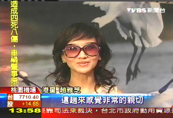 據(jù)臺(tái)灣TVBS報(bào)道,大墨鏡、白洋裝,港星趙雅芝跟著丈夫,一塊搭機(jī)抵達(dá)臺(tái)灣。趙雅芝表示:“很高興又來(lái)到臺(tái)灣,跟大家見(jiàn)面!