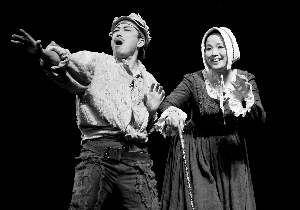 雖然在當(dāng)今的話劇舞臺上活躍著不少影視明星,但前晚孫海英、呂麗萍主演的易卜生名劇《培爾金特》還是讓觀眾看到他們二人不僅有明星的光彩,更有對藝術(shù)執(zhí)著追求的信念,正是如此,話劇《培爾金特》才讓觀眾覺得彌足珍貴。孫海英顛覆了那種僵化的軍人形象,用豐富的形體語言展示了一個放蕩不羈的青年培爾,而呂麗萍在劇中一人分飾培爾金特的母親和情人兩角,她的表演展示了一個科班出身的舞臺劇演員的深厚功底。呂麗萍在演出之前曾稱:“《培爾金特》是她在中戲的畢業(yè)大戲,此次演出是圓她25年的一個夢!”