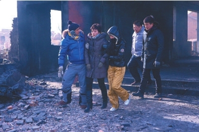 在郊區(qū)的片場(chǎng),不但氣溫極低,還刮著五六級(jí)的西北風(fēng),而樓房周?chē)B安裝保護(hù)措施的位置都沒(méi)有,工作人員全棉服上陣還冷得跺腳,可憐的袁立最后凍得連說(shuō)話(huà)都張不開(kāi)嘴了,而當(dāng)她聽(tīng)到許小寧發(fā)自心靈的呼喚時(shí),臉上仍然很快就流下幸福的眼淚,表演功力非常了得。在這場(chǎng)戲中臺(tái)詞最多的黃磊也被大風(fēng)搞得面目全非,臉龐黑得像火炭,但他仍情愿為自己喜愛(ài)的角色奉獻(xiàn)。