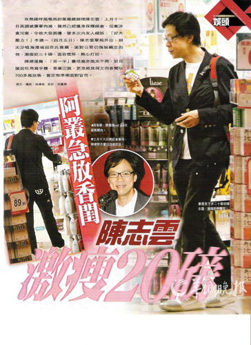 據(jù)香港《壹周刊》報(bào)道,陳志云上月11日被廉署拘捕,雖然已經(jīng)獲準(zhǔn)保釋候查,但牽涉貪污案,令他大受困擾。本周一,陳志云獨(dú)自外出買藥,被拍到面對(duì)公眾仍強(qiáng)裝鎮(zhèn)定的他,激瘦近20磅,面容憔悴,無(wú)心打扮。