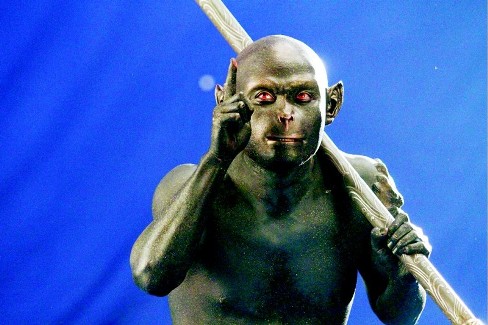 已經(jīng)進(jìn)入最后拍攝階段的張紀(jì)中版新《西游記》日前又曝光一組孫悟空的全新造型,傳說(shuō)中的“裸戲”也揭開(kāi)神秘面紗。據(jù)記者了解,此次曝光的劇照,專(zhuān)為孫悟空被太上老君煉丹爐煉燒的戲份設(shè)計(jì)。從劇照中看,由于猴毛在煉丹爐里完全被燒光,這個(gè)造型中,吳樾脫掉“猴毛衣”,取而代之的是包括眼睛、嘴唇在內(nèi)身上每一寸皮膚都涂滿烏金色的金粉,整個(gè)人都如少林寺18銅人一般,整體看起來(lái)就是一個(gè)具有中國(guó)特色的“阿凡達(dá)”。