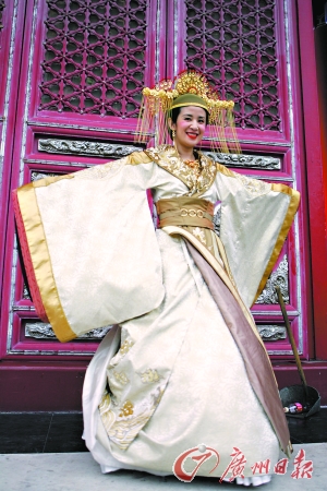 頭頂黃金冠,身披金色鳳袍,脖子上還扣著一串沉甸甸的金鏈子,這是吳君如所有參演的王晶電影里最賢良淑德、精美絕倫的一次。不過(guò),在橫店白天30攝氏度的高溫下,這套華麗的“戰(zhàn)衣”吳君如一穿就得12個(gè)小時(shí)。此外,吳君如還得忍受對(duì)女兒的相思之苦!拔叶7天沒(méi)有見(jiàn)她了!還好過(guò)兩三天就拍完了!彼嬖V記者,因?yàn)樯岵坏门畠,之前?lái)劇組報(bào)到的時(shí)候自己特別選了香港到杭州最晚的一班飛機(jī),為的就是要賴(lài)到最后一分鐘,多陪女兒一會(huì)兒!瓣惪尚炼几摇对V’ 了。他在上海拍《十月圍城》,問(wèn)我為什么不能先飛到上海看看他再來(lái)橫店。說(shuō)實(shí)話,我都沒(méi)想到他。我只是想,從上海到橫店要多花兩個(gè)小時(shí),我還是把這點(diǎn)時(shí)間陪女兒好了!