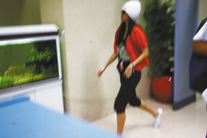 晚9:15,“來(lái)了!來(lái)了!”安檢人員對(duì)講機(jī)里傳來(lái)前方隨時(shí)更新的信息,只見(jiàn)章子怡在一位胡須男助手的引導(dǎo)下,面露微笑、輕松自如地走過(guò)安檢門(mén),白色線帽和黑超墨鏡很是打眼。此時(shí),本報(bào)攝影記者卻被劇組工作人員強(qiáng)行按住相機(jī)。旁邊的地面服務(wù)人員看到真人版“國(guó)際章”不禁感嘆道:“好瘦哦!皮膚還白耶!”一男生說(shuō):“恁個(gè)熱,還戴恁個(gè)厚的帽子。”