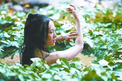 章子怡在《雪》片中飾演女主角金蓮,她與雪花在彼此身上找尋慰藉,喜歡在扇子及手帕上寫(xiě)女書(shū),互通心事,甚有同志意味,其中一幕最大膽的重頭戲,是兩女主角要玉帛相對(duì),然后互相在對(duì)方的胸前肌膚寫(xiě)上女書(shū)訴心曲。