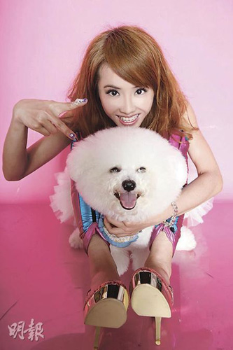 中新網(wǎng)5月22日電 香港《明報》報道,蔡依林(Jolin)新專輯《花蝴蝶》今日改版推出《華麗蛻變終極版》,Jolin特別拍攝全新30頁寫真集。拍照當(dāng)天,她的愛犬Whoohoo見到主人不停擺出各種pose,它也湊熱鬧跑到鏡頭前搶鏡,還露出比主人更燦爛的笑容。Jolin得意地說:“這是誰養(yǎng)的狗,怎么這么可愛!”Jolin又換上露肩T恤,配上腳上的紫黃雙色絲襪極搶眼。