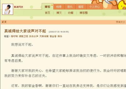 一直在“快女”中使用23歲年齡的郁可唯早前被網(wǎng)友爆料隱瞞已經(jīng)26歲的真實年齡,并被指出23歲的年齡與多項賽前經(jīng)歷產(chǎn)生沖突。此外,一名知情人還爆料,郁可唯確實出生于1983年,而今年參加“快女”是采用假身份證報名,目前已被識破,不過該消息并未得到天娛以及湖南衛(wèi)視方面的肯定。7月30日下午,郁可唯在個人博客中公開道歉,承認(rèn)確實在“快女”比賽中改動過年齡:“真誠的給大家說聲對不起。在這件事上我當(dāng)時確實欠考慮,一時的沖動和糊涂,沒有考慮后果!蹦壳耙阎稿e的郁可唯還表示希望當(dāng)初的傻行為能夠被原諒,而她本人也會更努力的唱歌盡力彌補(bǔ)過失。