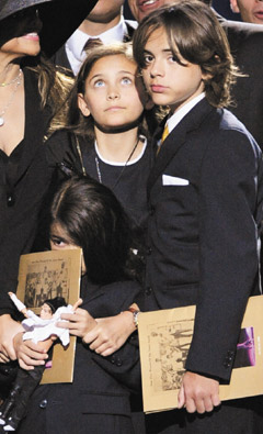 外電消息,據(jù)杰克遜家族的密友爆料,今年葛萊美獎(jiǎng)?lì)C發(fā)終身成就獎(jiǎng)給已故天王巨星邁克爾•杰克遜,杰克遜媽同意讓12歲的王子和11歲的派瑞絲代表領(lǐng)獎(jiǎng),但不允許7歲的毯子現(xiàn)身公眾場合。