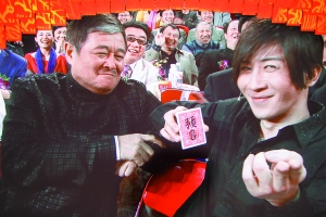 獲得語言類一等獎的本山大叔在元宵晚會上依然是只露面不表演。去年元宵晚會上,小沈陽一人登臺獨(dú)唱《大!,不僅現(xiàn)場唱得趙本山淚水漣漣,也讓大家對師徒二人之間的情誼留下深刻印象。此前有消息稱今年元宵晚會小沈陽和王小利將表演二人轉(zhuǎn)絕活,但最終小沈陽、王小利及趙本山首位歌手徒弟湯潮合唱了一首歌曲《美了美了》,以此“慶祝”得獎之后的好心情。