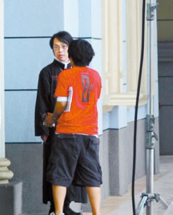 中新網(wǎng)4月21日電 臺灣藝人大炳二次吸毒被捕,引來各界關(guān)注,《敗犬女王》劇組擔(dān)心拍戲進(jìn)度受到干擾,20日連夜從臺北趕到臺中縣霧峰鄉(xiāng)偏遠(yuǎn)山區(qū)一間墓園教堂拍攝,將他在戲中擔(dān)任證婚的牧師角色拍完。