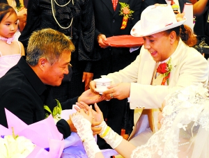 趙本山以“洋徒弟”博比·肯父親的身份致辭,并接受了新人斟上的“師傅茶”。昨日上午,趙本山在京出席了烏克蘭籍徒弟博比·肯和《劉老根》副導(dǎo)演張雯婷的婚禮!拌尮男,鞭炮齊鳴,紅旗招展,人山人海!庇眯∑贰缎〈拚f事》中的經(jīng)典臺詞形容昨日的婚慶現(xiàn)場再合適不過。趙本山從東北帶來了腰鼓隊和嗩吶手為婚宴助興,并親自為舞獅隊中的龍獅點(diǎn)睛。面對30桌賓客,趙本山豪爽宣布:“今天沒帶什么禮物,所有吃喝我都買單了!庇浾 郭延冰 勾伊娜 實習(xí)生吳丹 攝影報道