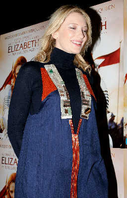 根據(jù)《悉尼先驅(qū)晨報》報道,38歲的布蘭切特前晚亮相新片《伊麗莎白2:黃金時代》的悉尼首映式,在紅地毯上被記者問及是否懷孕,她干脆地回答:“是的!倍斢浾咛崞饌髀務f她這次懷的是個男孩時,布蘭切特回應說:“你們知道的比我還多,F(xiàn)在還早呢。預產(chǎn)期在明年4月!
