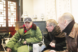 陳凱歌是華人導演中惟一獲得過金棕櫚大獎的,因此福茂來到中國后第一個想見的導演便是他。昨天下午,《梅蘭芳》劇組在懷柔拍攝一場黎明和陳紅的對手戲。3點左右,福茂先生一行3人在工作人員的引導下直接來到了拍攝現場。福茂見到坐在監(jiān)視器前的陳凱歌導演后,先來了一 個熱情的擁抱,隨后就坐在了監(jiān)視器前,與導演親切地交談起來。