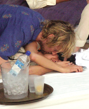 他近日和好友度假時似乎已看不到此前“自殺傾向”的陰影,不時與同行的女伴調(diào)笑、玩鬧,并在眾目下一親美女芳澤,毫不遮掩。