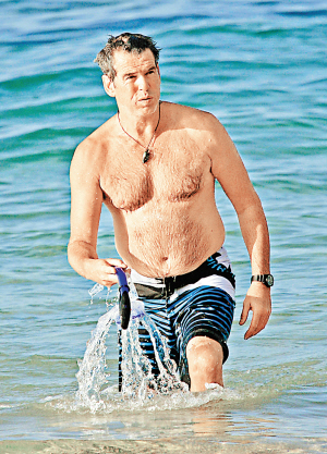 圖文:布魯斯南與肥老婆海邊玩樂被媒體譏諷