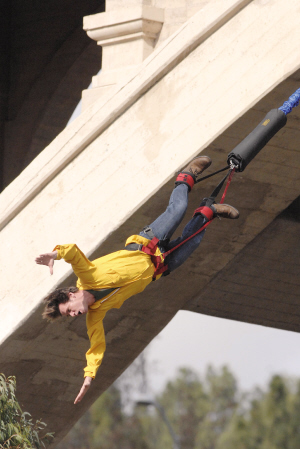 組圖:金·凱瑞拍冒險(xiǎn)鏡頭 46米高空橋躍下