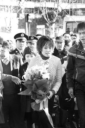 至10時(shí)15分慶典儀式完畢,人群仍然不肯散去!胺凑歼t到了,打電話請(qǐng)個(gè)假吧!再等等,她還會(huì)出來(lái)!