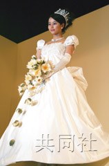 中新網(wǎng)2月29日電 據(jù)共同社消息,日本人氣女演員堀北真希27日在婚紗設(shè)計(jì)師桂由美的最新婚紗秀上,頭戴鑲有價(jià)值3億日元(約合2000萬元人民幣)的鉆石寶冠,身穿豪華婚紗閃亮登場。
