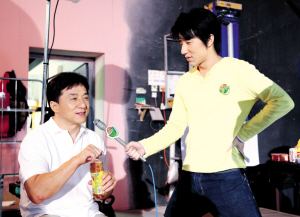 記者在片場發(fā)現(xiàn),這次“原葉”廣告的設(shè)計情節(jié)也很有趣。故事開始,一臉羞澀的房祖名想要送東西給心儀的女孩,不過或許是沒有經(jīng)驗(yàn),房祖名手中那捧香檳郁金香看起來沒有什么精神要耷拉下去。女孩面有難色,吱唔了句:“還行”。這時,成龍突然跳出來對兒子一頓當(dāng)頭棒喝:“還行?怎么行!”接著,成龍拿著一瓶“原葉”調(diào)味茶飲料,告誡房祖名:“送給她,當(dāng)然要百分百的。”
