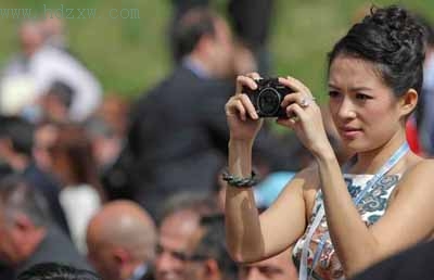 雖為記者,但章子怡也不忘追星。隨著前國際奧委會主席薩馬蘭奇的入場,章子怡拿起相機對準薩翁,而后兩人愉快合影。章子怡落座貴賓席5排左邊第四位。在儀式過程中,她面帶微笑,不時站起身用相機記錄。