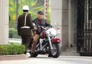 日前某天下午記者看見葛優(yōu)騎著一輛嶄新的國產(chǎn)某品牌大型摩托車駛出別墅大門,他穿著休閑夾克,戴著一頂棒球帽,端坐車上,滿臉含笑,經(jīng)過大門時還主動朝保安點頭,看上去心情超爽,一出別墅大門,葛優(yōu)便加大油門,繞著別墅疾馳起來,他姿態(tài)瀟灑,動作嫻熟,仿佛是一位正在前去參加“方程式”比賽的摩托騎手。幾分鐘后,葛優(yōu)結(jié)束了這次短暫的兜風(fēng),帶著煥發(fā)出的一種少有的活力返回別墅。卓 偉