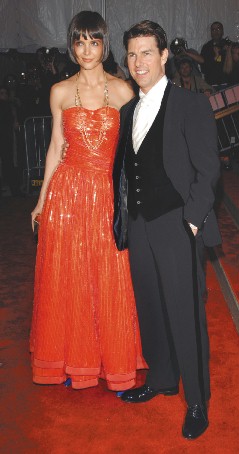 圖文:凱蒂火紅長(zhǎng)裙亮相 阿湯哥成了"小矮子"