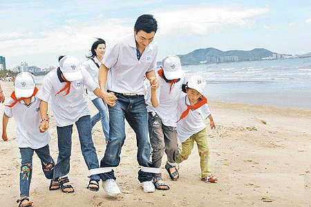 中新網(wǎng)6月6日電 據(jù)臺灣媒體報道,劉德華(華仔)日前帶著80名災區(qū)小朋友,參加在海南島三亞灣舉辦的“汶水入!彼拇ㄙc災活動。華仔與小朋友玩起5人6腳在500米長的沙灘上進行接力傳遞,華仔最后還抱起1名災區(qū)小朋友,將象征愛心與祝福的汶川之水舉起倒入大海,完成儀式。