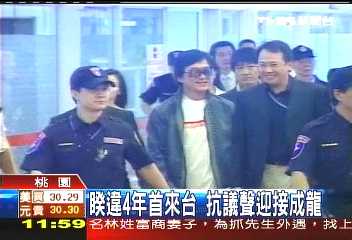 報(bào)道說(shuō),在現(xiàn)場(chǎng)有桃園縣議員齊聲高呼:“滾蛋!滾蛋!”也有民眾支持偶像:“歡迎成龍!歡迎成龍!”