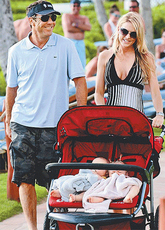 中新網(wǎng)6月18日電 據(jù)臺灣媒體報道,“美國甜心”梅格·瑞恩的前夫丹尼斯·奎德(Dennis Quaid)與現(xiàn)任妻子委托代理孕母生下龍鳳胎寶寶,但寶寶出生沒幾天便因醫(yī)院誤打超出標(biāo)準(zhǔn)劑量一千倍的血液稀釋劑,差點枉送小命。如今兩個寶貝已7個月大,健康活潑,54歲的奎德日前推他們出門“游街”,開心滿足全在臉上。