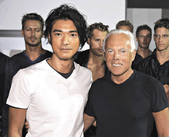 名服裝設計師阿瑪尼邀金城武(左)到米蘭欣賞新裝發(fā)表會。