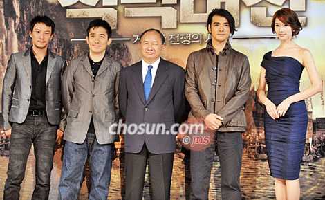 據(jù)朝鮮日?qǐng)?bào)報(bào)道,昨日《赤壁大戰(zhàn):龐大的戰(zhàn)爭之開始》導(dǎo)演吳宇森(62歲)和主演梁朝偉(飾周瑜)、金城武(飾諸葛亮)、張震(飾孫權(quán))、林志玲(飾小喬)出席在首爾廣壯洞華克山莊酒店舉行的記者會(huì),為影片在韓國首映造勢。