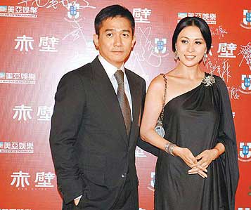 劉嘉玲與梁朝偉恩愛出席《赤壁》慈善首映禮。