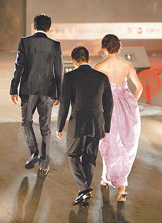 偉仔致詞時還是不忘拉近與大家的距離,他說:“好久沒來臺灣非常興奮,看到今天的天氣就想起去年這個時候,《赤壁》劇組在大陸頂著40度高溫穿厚重的衣服拍打戲,真的好熱!”他并與其它兩位男主角有默契地穿黑西裝酷帥有型。