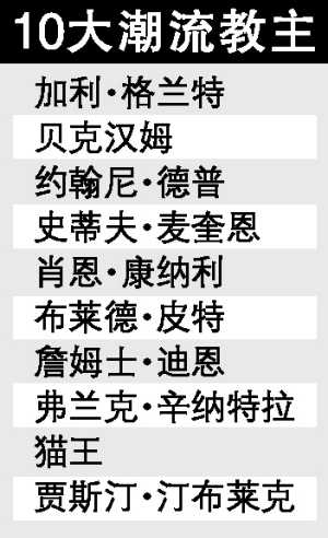 這次的潮流選舉中的前10名有不少都是好萊塢帥哥,如約翰尼·德普、肖恩·康納利、布萊德·皮特、貓王等等,只有第十名的賈斯汀較為年輕,看來大家都青睞上了點年紀兼有味道的男人。