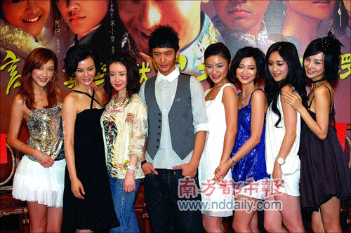 繼在廣東等地開(kāi)播后,昨天下午,《鹿鼎記》又在北京舉行了盛大的開(kāi)播會(huì)。張紀(jì)中率黃曉明和他的七個(gè)老婆劉孜、應(yīng)采兒、胡可等齊齊亮相,7個(gè)美女濃妝艷抹一個(gè)比一個(gè)性感,并且在應(yīng)采兒帶頭下現(xiàn)場(chǎng)大肆“調(diào)戲”黃曉明,大大搶走黃曉明的風(fēng)頭。而前幾次宣傳都未露面的鐘漢良也專(zhuān)程趕到北京造勢(shì),鐘漢良也面對(duì)7個(gè)美女的伶牙俐齒也更顯言辭笨拙,只好與黃曉明兩人相視苦笑,黃曉明最后不得不大嘆“還是一夫一妻制好。