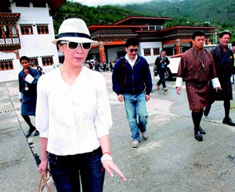 梁朝偉(右起)、劉嘉玲婚后首度在不丹露面,和林青霞大方面對(duì)鏡頭。