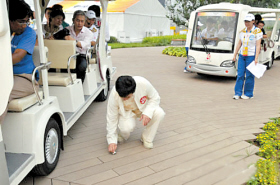 日前,悄悄飛來北京的成龍大哥,在十多位工作人員的陪同下,走進(jìn)了嶄新的奧林匹克主題公園。身為北京奧運(yùn)義務(wù)宣傳大使的他,這次自然又是為了即將開幕的奧運(yùn)盛會,向世界宣傳一座新奧運(yùn)城——北京。半路上,坐在觀光車上的成龍突然一個箭步跳下車來,大哥的這個動作也讓眾人嚇了一跳。而更讓人沒有想到的是,這位功夫之王現(xiàn)場展現(xiàn)了真功夫,騰空一躍,卻只是為了一個煙頭。成龍俯身撿起工人不小心遺落的煙頭,走到垃圾桶旁丟了進(jìn)去,神情自然,絲毫沒有作秀成分。