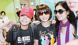 幾位明星都獲贈了“禮物”——為奧運加油的塑像。今天剛好過生日的潘瑋柏收到的是一尊踩滑板的塑像,充滿陽光活力,他開心地說:“我要把這個生日禮物帶回家!”談到馬上就要開幕的奧運會,潘瑋柏大聲撒嬌:“好想有人給我25張門票,我要到現(xiàn)場看比賽!”青春可人的S.H.E三個小妮子被塑造成拉拉隊的形象,三個人見到了嘰嘰喳喳地評論:“最貼心就是給我們都裝上假睫毛!”三個人在現(xiàn)場分享了她們最愛的運動,ELLA最近因為迷上沖浪而被曬成了小麥膚色,而HEBE則因為拍電視劇而愛上籃球,兩人都在現(xiàn)場像模像樣地表演起自己喜愛運動的動作。輪到SELINA,她笑著說:“我從小就最愛游泳,自由式和蛙式都不錯,現(xiàn)場就不展示了!”壓軸上場的周杰倫贏得了最高的歡呼聲,主演過《大灌籃》的他得到特別優(yōu)待,巨型的扣籃動作塑像從場館的外墻“破墻而出”,格外震撼,F(xiàn)場的志愿者也一起大喊:“周董加油!”