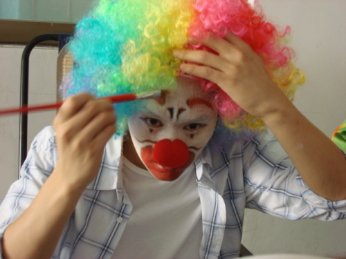 中新網(wǎng)8月14日電 據(jù)香港《太陽(yáng)報(bào)》報(bào)道,張智霖日前在博客上公開(kāi)幾張化上小丑妝的有趣相,第一張相是他戴著爆炸頭假發(fā),忙于白面上加色樣,而第二、三張相則是完成小丑妝,同小丑朋友合照,z中間還有一張是小丑張智霖拿著攝影機(jī)扮導(dǎo)演,可能他覺(jué)得張相太完美,故文字只得寥寥幾句:“我是一個(gè)演員,也是…一個(gè)小丑。”