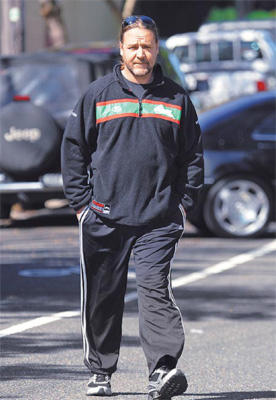 羅素·克洛前年買下澳洲職業(yè)橄欖球隊當老板,更是變本加厲不修邊幅,身材往橫向發(fā)展。盡管他片約不斷,但多半不用秀肌肉,等到上戲時,才發(fā)現(xiàn)戲服太緊。