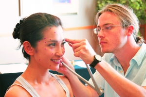 專家在李冰冰臉上貼上標(biāo)簽,以方便為蠟像定型。