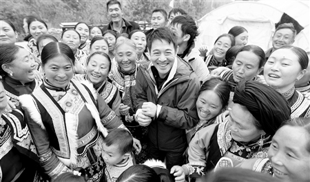 當天,李連杰還走訪了茂縣境內(nèi)的羌繡技藝培訓基地,之后,他又繼續(xù)趕往綜渠鄉(xiāng)的羌繡幫扶點,探望那里的繡女朱召應。朱召應和丈夫在汶川大地震中雙雙受傷,她的脊柱受損不能站立,她的兒女又有殘疾,生活非常艱難,后來朱召應加入羌族婦女就業(yè)幫扶計劃,每天埋頭做羌繡,生活有了很大改善。李連杰在她居住的帳篷里,不斷鼓勵這個坐在輪椅上的堅強女性,“你一定要繼續(xù)加油,總會慢慢好起來的。”離開茂縣之前,有人把剛剛收到的一條新聞短信拿給李連杰看,原來這是本報“華西手機報”發(fā)出的一條新聞,正是轉(zhuǎn)載昨日本報的報道《慈善大俠李連杰來到咱羌寨》,李連杰看了后很是高興,不過他說:“做慈善其實并不是我一個人的事,大家一起努力才能成功,有了我們是一家人的信念,一定能戰(zhàn)勝困難!