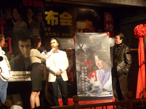 而主角甄子丹則再三強(qiáng)調(diào),功夫片應(yīng)以武打明星的真功夫?yàn)楦,矛頭似直指由梁朝偉飾演葉問的另一部《一代宗師》!度~問》主角甄子丹在現(xiàn)場表演打木人樁,極具氣勢,并獲葉準(zhǔn)大贊能演出先父神韻。
