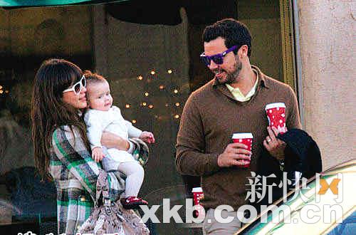 杰西卡·阿爾芭與老公攜7個(gè)月的愛(ài)女一同外出。