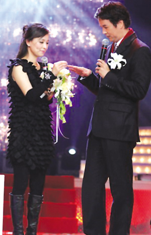 明星情侶林瑞陽(yáng)、張庭5日雙雙現(xiàn)身上海“2009十大快樂(lè)明星家庭晚會(huì)”錄制現(xiàn)場(chǎng),林瑞陽(yáng)當(dāng)眾再次向張庭求婚,十分浪漫。